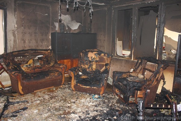 Ամբողջությամբ այրվել է հյուասենյակը` գույքով և մասամբ պատշգամբը (մոտ 30 քմ):