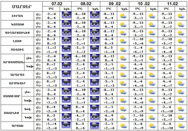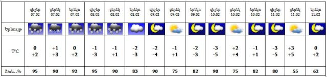 Փետրվարի 9-11-ին սպասվում է առանց տեղումների եղանակ: 7-8-ին սպասվում են տեղումներ: