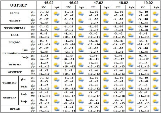 Փետրվարի 15-19-ը սպասվում է առանց տեղումների եղանակ: