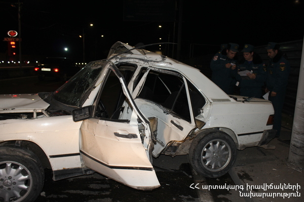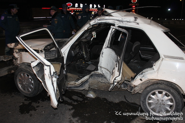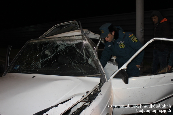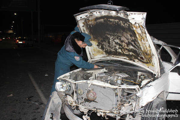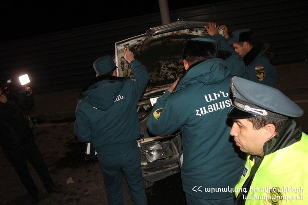 Մինչ փրկարարների դեպքի վայր հասնելը՝ տուժածներ, 1990 թ. ծնված Ա. Հ.-ը, 1993 թ. ծնված Մ. Ղ.-ը և 1993 թ. ծնված Ռ. Ղ.-ը տեղի ուժերով դուրս են բերվել ավտոմեքենայից: Փրկարարները տուժածներին մոտեցրել են շտապօգնության ավտոմեքենային: Վերջիններս հոսպիտալացվել են «Էրեբունի» ԲԿ, որտեղ Ռ. Ղ.-ը, ստանալով համապատասխան բուժօգնություն, դուրս է գրվել, իսկ Ա. Հ.-ի և Մ. Ղ.-ի առողջական վիճակը բժիշկները գնահատել են կայուն ծանր: