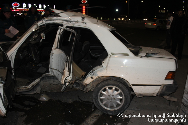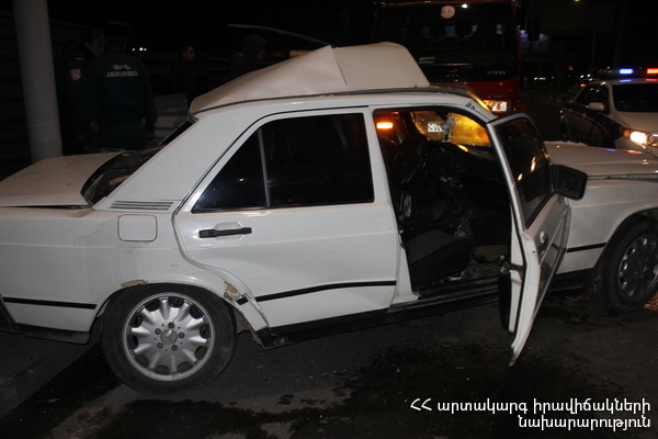 Պարզվել է, որ դեռևս չբացահայտված հանգամանքներում «Մերսեդես-Բենց E190» մակնիշի 73 TM 003 պետհամարանիշով ավտոմեքենան դուրս է եկել ավտոճանապարհի երթևեկելի հատվածից և բախվել սյանը: