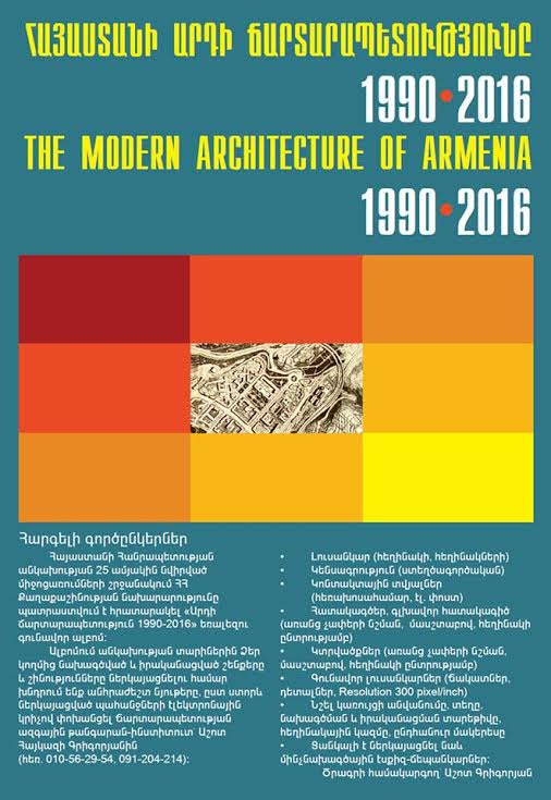 Քաղաքաշինության նախարարությունը Հայաստանի Հանրապետության անկախության 25-ամյակին նվիրված միջոցառումների շրջանակում, հրատարակելու է «Հայաստանի արդի ճարտարապետությունը 1990-2016» եռալեզու գունավոր ալբոմը, ուր տեղ են գտնելու անկախության տարիներին հայ ճարտարապետների կողմից նախագծված և կառուցված շենքերն և շինությունները: