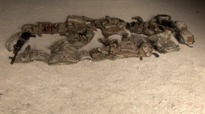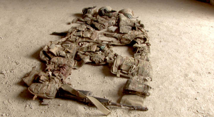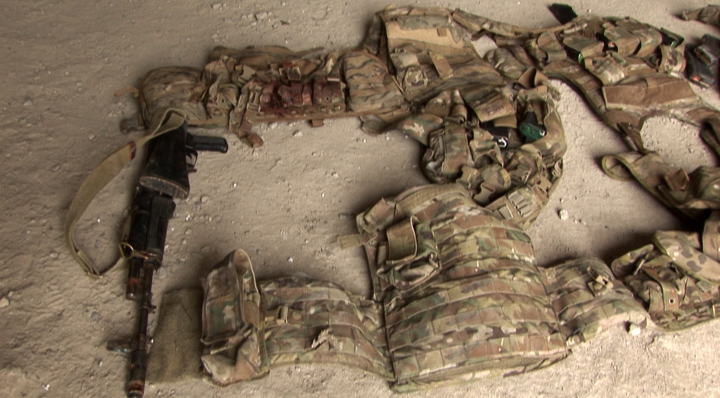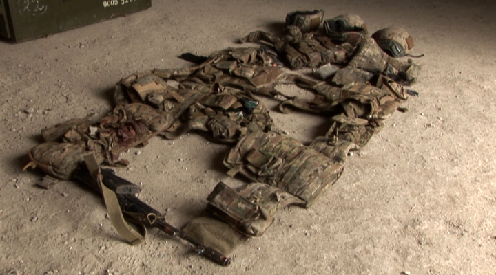 Ադրբեջանական զինուժի կողմից մարտադաշտում թողած հատուկ նշանակության ջոկատի զինծառայողների համար նախատեսված համազգեստի, կապի միջոցների և զինամթերքի պարագաներ:
