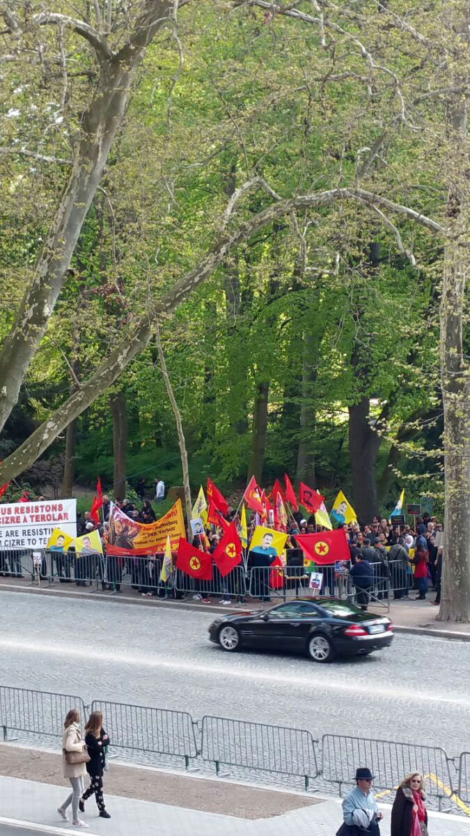 Ստրասբուրգից «Panorama.am»-ի թղթակիցը տեղեկացնում է, որ մեծ թվով ցուցարարներ շենքի մոտ վանկարկում են «Erdoghan Terrorist, Erdoghan Dictator»՝ «Էրդողան ահաբեկիչ, Էրդողան բռնակալ»: