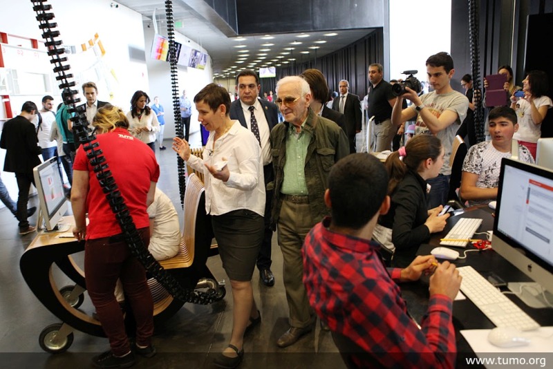 Այսօր Երևանի Թումո այցելեց լեգենդար շանսոնյե Շառլ Ազնավուրը, ով Հայաստանում է գտնվում «Ավրորա» մարդասիրական մրցանակաբաշխության առիթով: Նա շրջեց կենտրոնով, այցելեց նկարչության և երաժշտության դասընթացները, դիտեց ուսանողների աշխատանքներից մի քանիսը և շփվեց թումոցիների հետ: