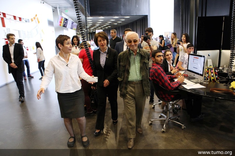 Ազնավուրին շատ դուր եկան Թումոյի ուսանողների աշխատանքները՝ լուսանկարները, դիզայներական գործերը և հատկապես Թումոյի ստարտափ «Yelling Animation Studio»-ի՝ Ցեղասպանությանը նվիրված կարճ անիմացիաները: