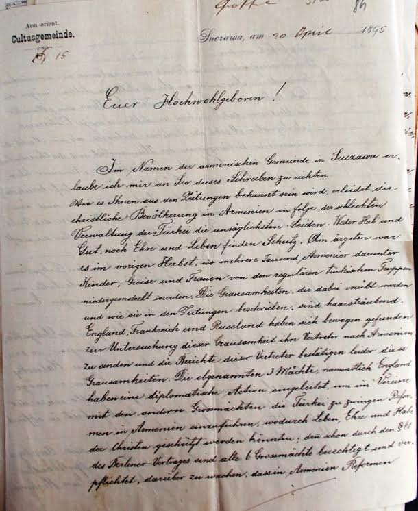 Բուկովինայի/Սուչավա հայկական համայնքի նախագահ Վարդերես Ֆոն Պրունկուլը առաջիններից էր, որ դեռեւս աբդուլհամիդյան ջարդերի ժամանակ ահազանգել է Օսմանյան կայսրությունում հայերի վիճակի մասին: Նա ողջ մնացած հայերին աջակցություն ցույց տալու, որբացած հայ երեխաների համար որբանոց հիմնելու նախաձեռնություն է հանդես բերել և նամակ է գրել Ավստրիայի արտաքին գործերի նախարարին 1895թ. ապրիլի 30-ին, վերջինիս խնդրելով օգնություն ցույց տալ քրիստոնյա հայերին: Նամակը, որը տեղ է գտել թերթում, ցուցադրվել է նաև Սուչավայում: