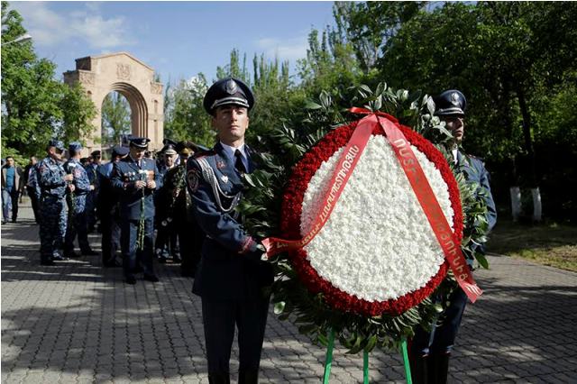 Ոստիկանության պատվիրակությունը՝ կոլեգիայի անդամներ, բարձրաստիճան սպաներ ու վետերաններ, ծաղկեպսակ ու ծաղիկներ դրեցին նաև Միլիցիայի հատուկ նշանակության ջոկատի մարտիկների հուշակոթողին՝ հարգանքի տուրք մատուցելով հանուն հայրենիքի զոհված զինակիցների պայծառ հիշատակին: