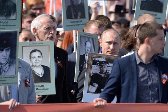 ՌԴ նախագահ Վլադիմիր Պուտինը Մոսկվայի Կարմիր հրապարակում մասնակցել է «Անմահ գունդ» ակցիային իր հոր՝ ճակատային զինվորական Վլադիմիր Սպիրիդոնովիչի լուսանկարով։ Շքերթը մեկնարկել է ՌԴ մայրաքաղաքի Լենինգրադյան պողոտայից՝ Տվերսկի ուղղությամբ։