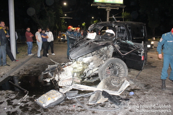 Փրկարարներն ավտոմեքենայից դուրս են բերել «Mercedes G500»-ի վարորդին, ով հոսպիտալացվել է «Աստղիկ» ԲԿ, որտեղ ժամը 01.10-ին մահացել է: Փրկարարներն ավտոմեքենայից դուրս են բերել նաև 1 ուղևորի, ով մահացել է հոսպիտալացման ճանապարհին: Բժիշկները տուժածներ Հ. Խ.-ի և Մ. Բ.-ի առողջական վիճակը գնահատել է ծանր, իսկ Ա. Բ.-ինը՝ բավարար: