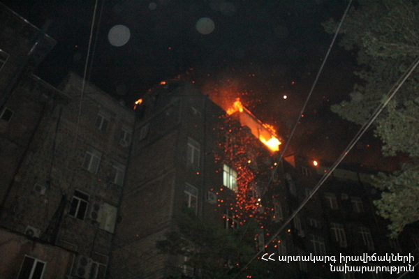 Ինչպես տեղեկացրել էինք, հուլիսի 10-ին, ժամը 21.25-ին ԱԻՆ–ում ստացված ահազանգի արդյունքում պարզվել է, որ հրդեհը բռնկվել է Տիգրան Մեծի 4 հասցեում գտնվող շենքի տանիքում՝ մոտ 1000 քմ մակերեսով: