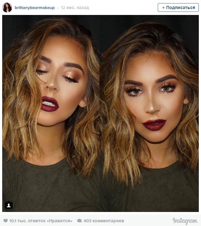 Գինեգույն շրթներկ և բրոնզագույն ստվերաներկ