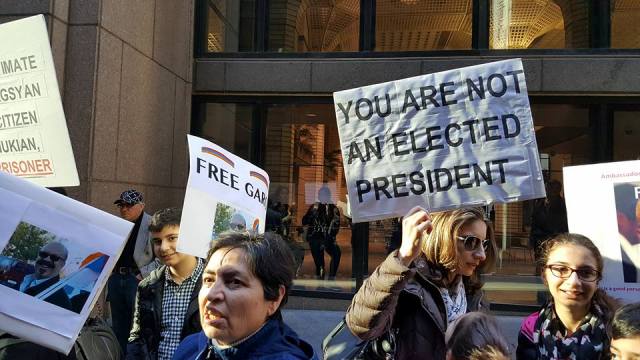 «Դուք ընտրված նախագահ չեք». ինչպես են Նյու Յորքում դիմավորել Սերժ Սարգսյանին (լուսանկարներ)
