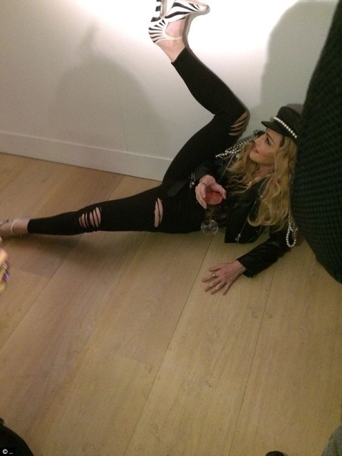 58–ամյա երգչուհի Մադոննան փոքր–ինչ «գզգզված» տեսք է ունեցել, երբ Լոնդոնում աճուրդների տանը տեղի ունեցող Մերթ Ալասի և Մարկուս Պիգոտի հեղինակավոր ֆոտոցուցահանդեսի ժամանակ թավալ է եկել գետնին։