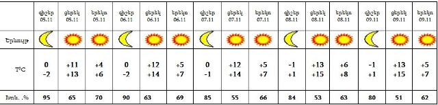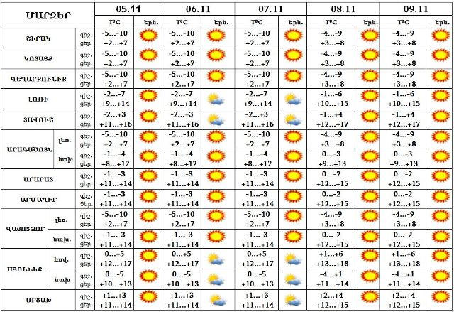 Նոյեմբերի 5-9-ը սպասվում է առանց տեղումների եղանակ: