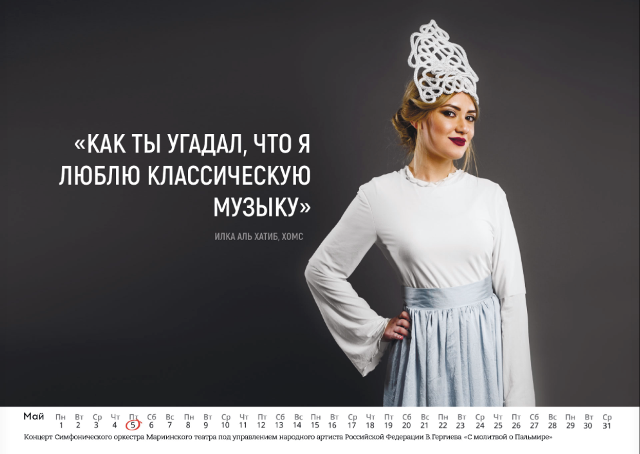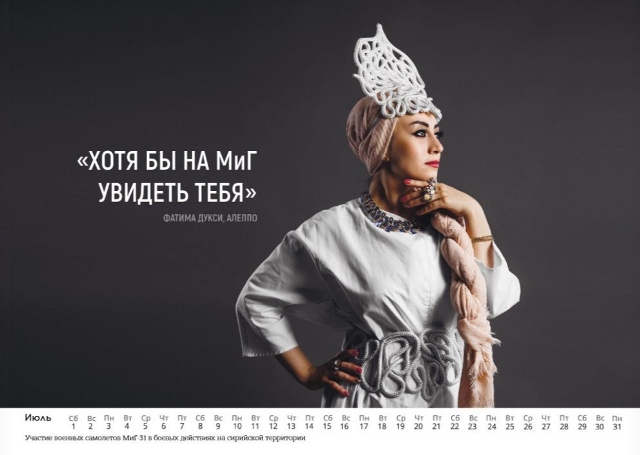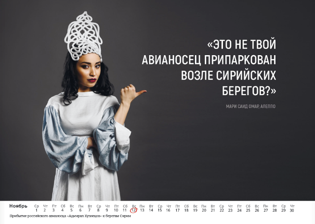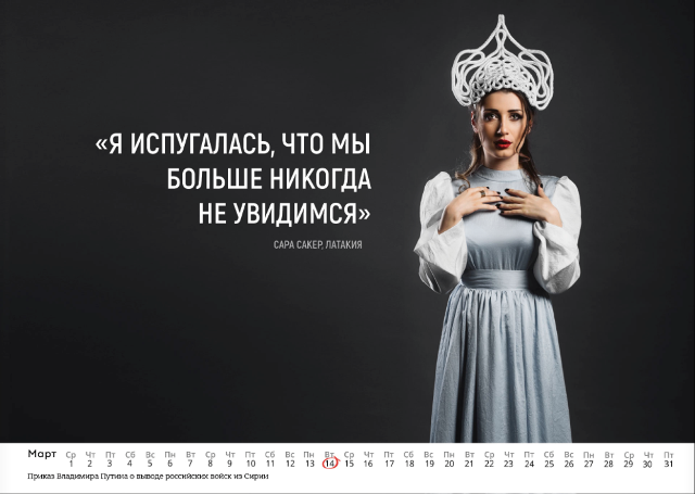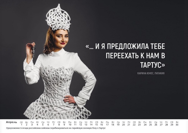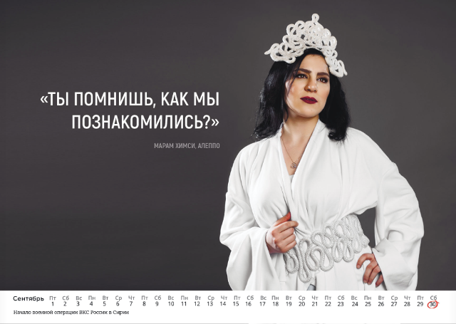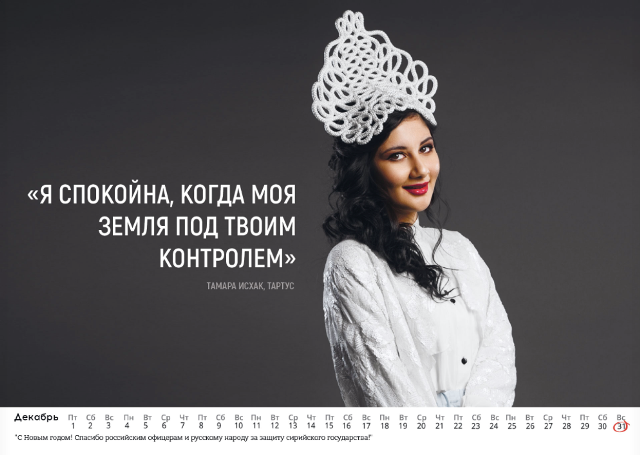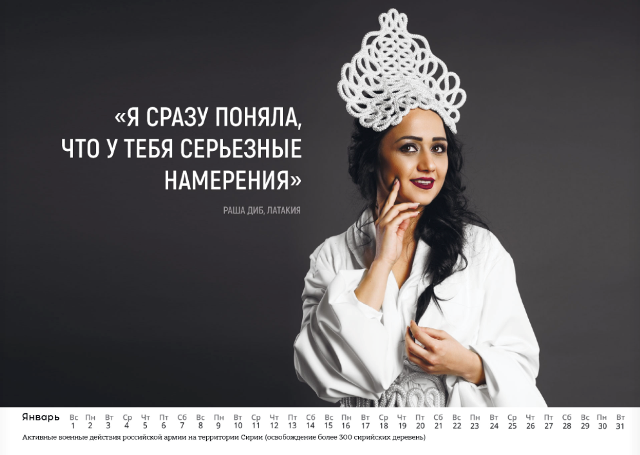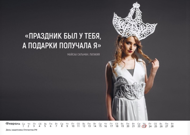 «Ժամանակակից արվեստի դպրոցի» երիտասարդական բաժինը ներկայացրել է իր նոր՝ «Օրացույց` նվիրված ռուս սպաներին» նախագիծը։ Լուսանկարվել է 12 սիրիացի աղջիկ՝ ի աջակցություն ՌԴ զինված ուժերի ներկայացուցիչների։ Այս մասին հաղորդում է «Russia Today»–ը։