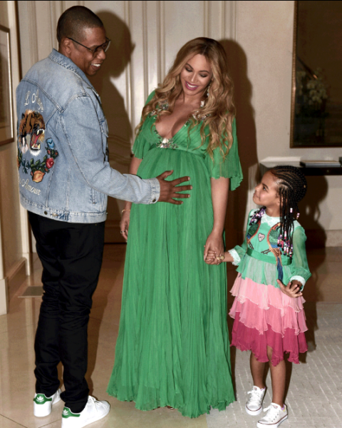 Նրանց հետ են եղել նաև ընտանիքի հայրը՝ Ջեյ Զին, ով նույնպես կրել է «Gucci» ապրանքանիշից բաճկոն, սև ջինսեր և «Adidas Stan Smith» մարզակոշիկներ։