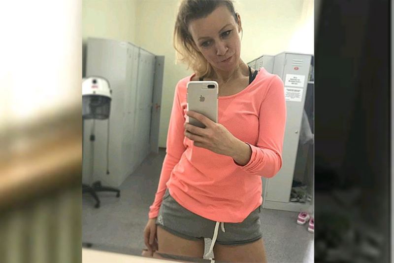 Զախարովան մարզական հագուստով լուսանկար է հրապարակել՝ վարդագույն կարճ բլուզով և կարճ կիսատաբատով հայելու առջև կանգնած։
