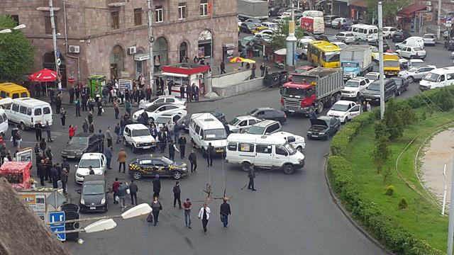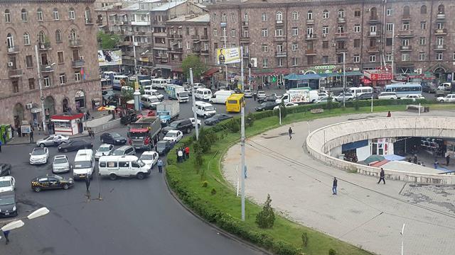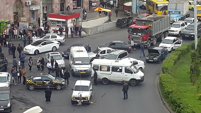 7or.am-ի թղթակիցը հայտնում է, որ բեռնատար մեքենայով և 20 համարի «ԳԱԶել» մակնիշի երթուղայիններով փակել են դեպի Գարեգին Նժդեհի հրապարակ տանող ճանապարը։