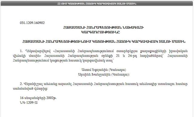 2002թ.VS 2018թ. 2002թ։ ի՞նչ փաստաթուղթ են ստացել Արսինե Խանջյանն ու Ատոմ Էգոյանը։