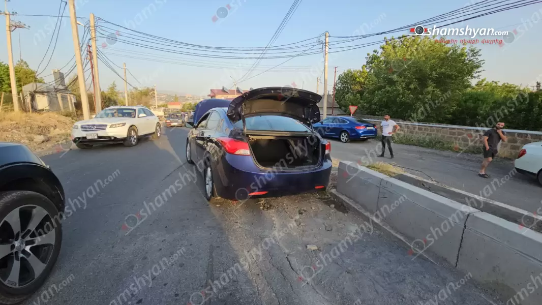 Hyundai Elantra-ում պայթյուն է առաջացել, ինչի հետևանքով վարորդը բախվել է բետոնե եզրաքարին. կա 3 վիրավոր (լուսանկար)