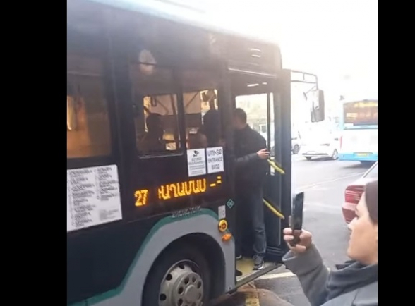Բա էս ի՞նչ ա։ Քաղաքապետարանի աշխատողներն էս ինչո՞վ են զբաղված։ Էս ո՞ւմ են փորձում իջեցնել տրանսպորտից։ Էս ո՞վ եք դուք։