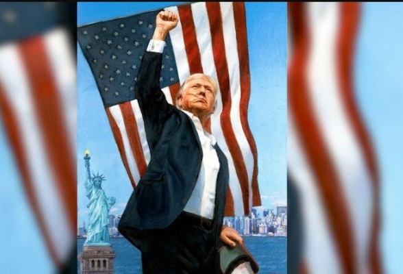 Դիմանկարում Թրամփը պատկերված է ԱՄՆ դրոշի և Ազատության արձանի ֆոնի վրա՝ վեր պարզած, բռունցքով սեղմված ձեռքով։ Այդ ժեստը հիշեցնում է 2024 թվականի հուլիսին Փենսիլվանիայում նրա դեմ իրականացված մահափորձից հետո արված հայտնի լուսանկարը, որը լայնորեն օգտագործվել է Թրամփի նախընտրական արշավի ընթացքում։
