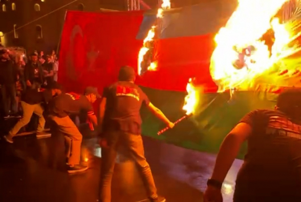 Ջահերով երթի մեկնարկից առաջ վառվեցին ցեղասպան Թուրքիայի և Ադրբեջանի դրոշները