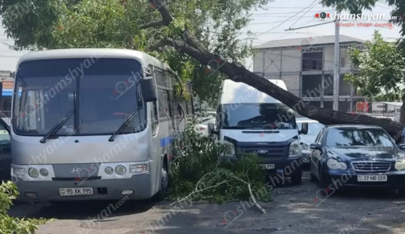 Իսակովի պողոտայում հաստաբուն ծառից ճյուղը կոտրվել և ընկել է կայանված «Ford Transit», «Mercedes» մեքենաների և «Hyundai» ավտոբուսի վրա