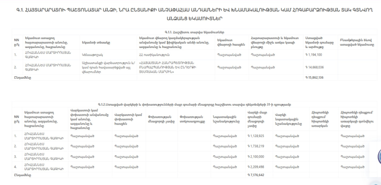 Հետաքրքիրն այն է, որ անգամ 2021 թվականի հայտարարագրի համաձայն՝ Մարտիրոսյանը 6 գույք չի ունեցել։