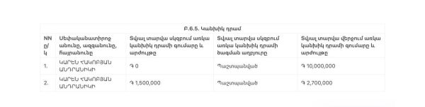 Ընդհանուր՝ 12,700,000 դրամ կանխիկ միջոց։