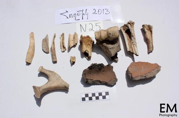 Խոշոր եղջերավոր անասունի` հավանաբար եղջերուի ծնոտի մասեր: Հողմիկ 2013, -13 – A քառակուսի: