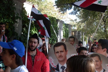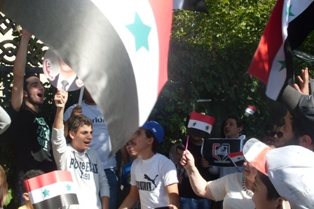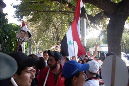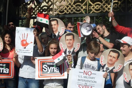 Այսօր` ժամը 15։00–ին, Հայաստանում ուսուցանող մի խումբ սիրիահայեր, ինչպես նաև սիրիաբնակ արաբներ և քրդեր, Բաղրամյան պողոտայով երթ են կազմակերպել դեպի ՀՀ–ում Սիրիայի դեսպանություն։ Նրանք իրենց աջակցությունն են հայտնել Սիրիայի նախագահ Բաշար Ասադին և դատապարտել Սիրիայի վրա հարձակվելու ԱՄՆ նախագահ Բարաք Օբամայի ծրագրերը։ Երթի մասնակիցները հանդես են եկել «Օբամա՛, հեռացի՛ր», «Մեր արյունով կպաշտպանենք մեր նախագահին», «Մինչև վերջ մեր երկրի հետ ենք», «Մենք չենք ուզում` ոչ մի երկիր մեզ ղեկավարի» և այսբովանդակ այլ կոչերով։