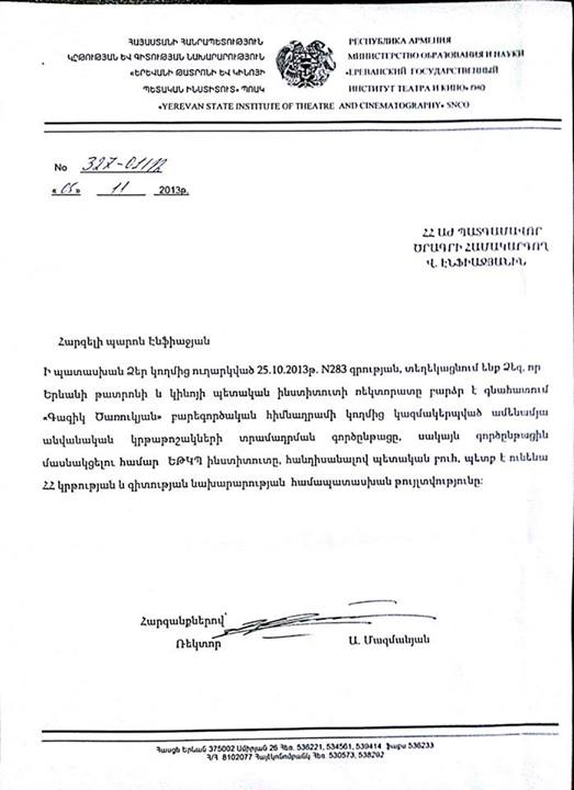 Փաստաթղթեր, որոնք պատասխան են տալիս վերջին օրերին շրջանառվող որոշ մեկնաբանություններին և ֆեյսբուքյան ստատուսներին: