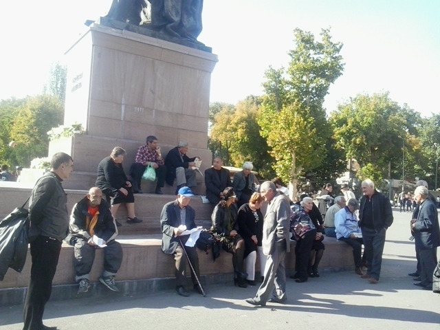 «7օր»–ի թղթակցի հարցին, թե ինչո՞ւ են այդքան շուտ եկել հրապարակ, նրանցից մեկը պատասխանել է. «Վախենում ենք՝ «մարշրուտկա» չլինի գալու. պահում են, չեն թողնում՝ ժողովուրդը գա»։