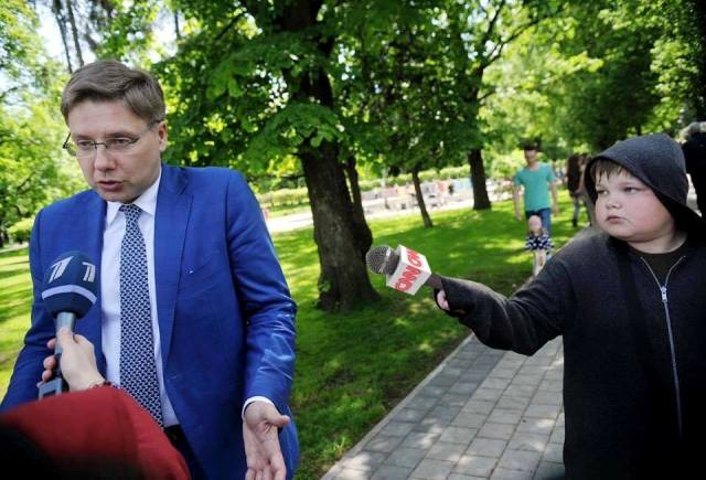 Ուշագրավ մրցույթի մասին է հայտարարել Լատվիայի մայրաքաղաք Ռիգայի քաղաքապետ Նիլ Ուշակովը: Իր ֆեյսբուքյան էջում քաղաքապետը նկար է տեղադրել, որում պատկերված է, թե ինչպես է նա հարցազրույց տալիս ռուսական հեռուստաալիքներից մեկի լրագրողին, իսկ այդ պահին նրա կողքին կանգնած տղան մատով է ցույց տալիս Ուշակովին։