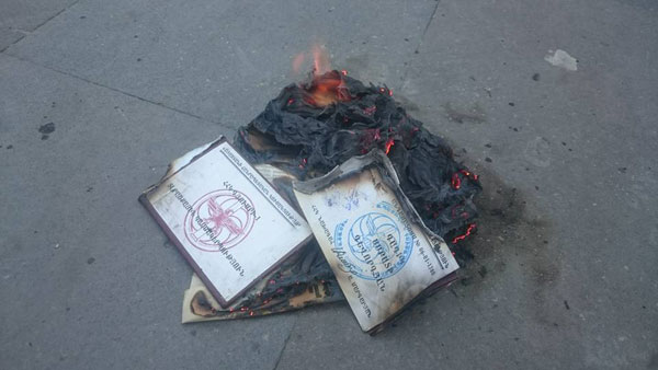Գյումրու Թատերական հրապարակում ՀՀԿ-ականն այրել է իր անդամատոմսը (լուսանկար)