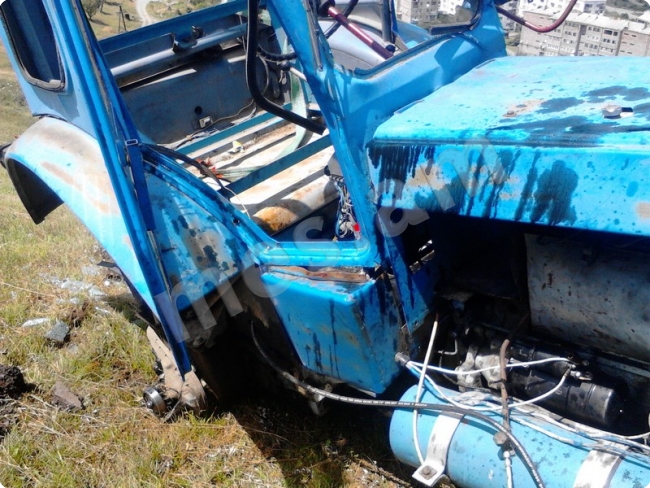 Տրակտորը կողաշրջվել է, անվադողը պոկվել, հարվածել է բնակարաններից մեկի պատին (լուսանկարներ)