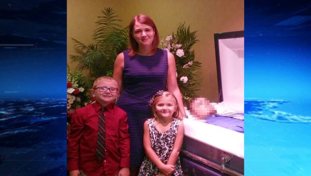 Մայրը երեխաների հետ ուրախ–ուրախ լուսանկարվել է ամուսնու դագաղի մոտ (լուսանկար)