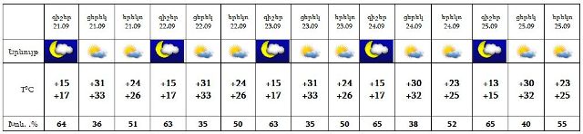 Օդի ջերմաստիճանը 21-ին կբարձրանա 1-2 աստիճանով, այնուհետև էապես չի փոխվի: