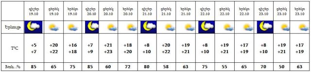 Օդի ջերմաստիճանը հոկտեմբերի 18-21-ին աստիճանաբար կբարձրանա 5-6, արևելյան շրջաններում՝ 9-11 աստիճանով:
