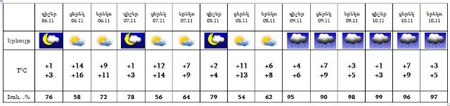Նոյեմբերի 6-8-ին սպասվում է առանց տեղումների եղանակ, 9-ին, 10-ին ժամանակ առ ժամանակ սպասվում է անձրև: