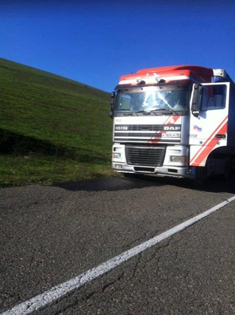 Ադրբեջանական մարտական հենակետերից գնդակոծված ռուսական բեռնատար մեքենան (լուսանկարներ)