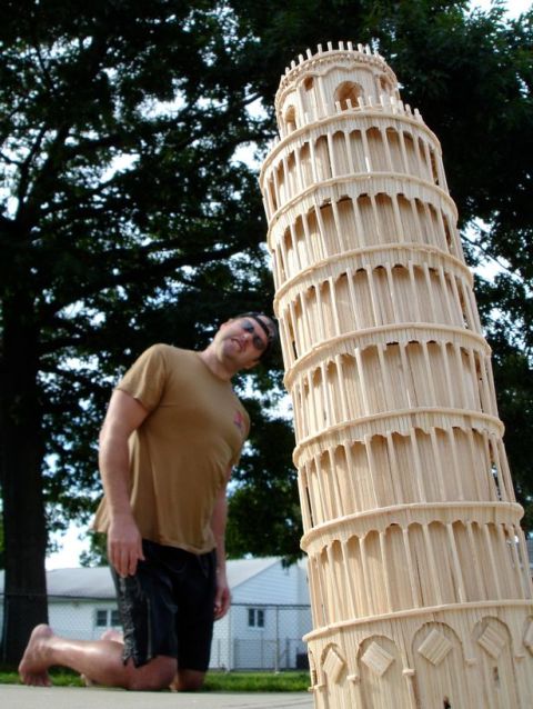 Ավելի վաղ Մանրոն ատամնափորիչներից Ստիտակ տան, հնդկական Թաջ–Մահալի և իտալական Պիզայի աշտարակի պատճեններն էր կառուցել։