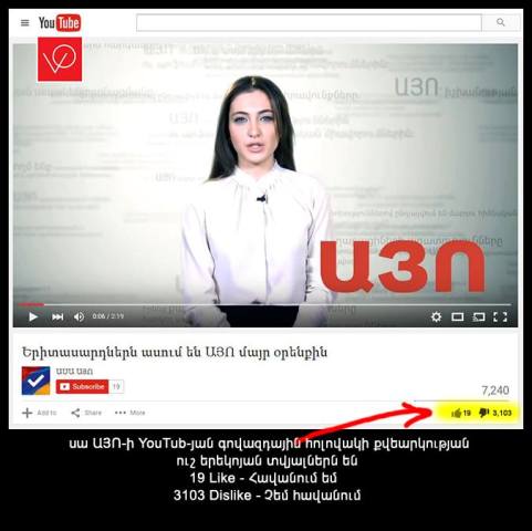 Մոտ երկու շաբաթ առաջ «Այո»-ի ճակատը «Youtube»-ում բացեց «Ասա՛ այո՛» պաշտոնական էջը, որն իր վրա ուշադրություն գրավեց ոչ թե քարոզող տեսանյութերի պատճառով, այլ սակավաթիվ հետևորդների ու «like»-երի, և չափից դուրս շատ «dislike»-ի: