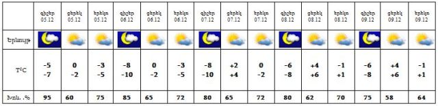 Դեկտեմբերի 5-9-ին սպասվում է առանց տեղումների եղանակ: