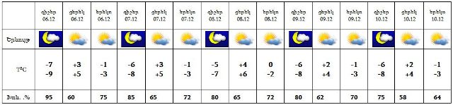 Օդի ջերմաստիճանը դեկտեմբերի 6-ի գիշերը կնվազի 2-4 աստիճանով, 7-8-ին նույնքան կբարձրանա: