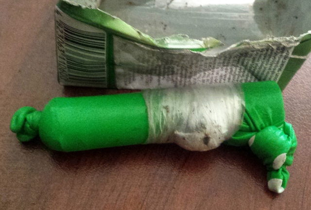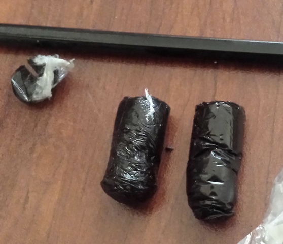 Զննության ընթացքում առգրաված փաթեթից հայտնաբերվել են չորս առանձին փաթեթներ, որոնցից երեքում առկա էր ընդհանուրը 17,8 գրամ քաշով սև գույնի զանգված, իսկ չորրորդում` 0,6 գրամ քաշով սպիտակ, փոշենման զանգված: