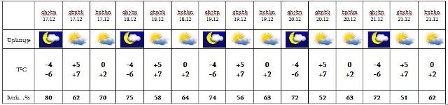 Դեկտեմբերի 17-21-ին սպասվում է առանց տեղումների եղանակ: