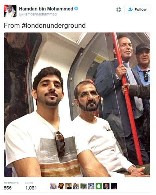 Накануне правитель Дубая и заместитель главы Объединенных Арабских Эмиратов шейх Махаммад бен Рашид Ал Мактум вместе со своим сыном решил проехаться после рабочего дня в метро Лондона.